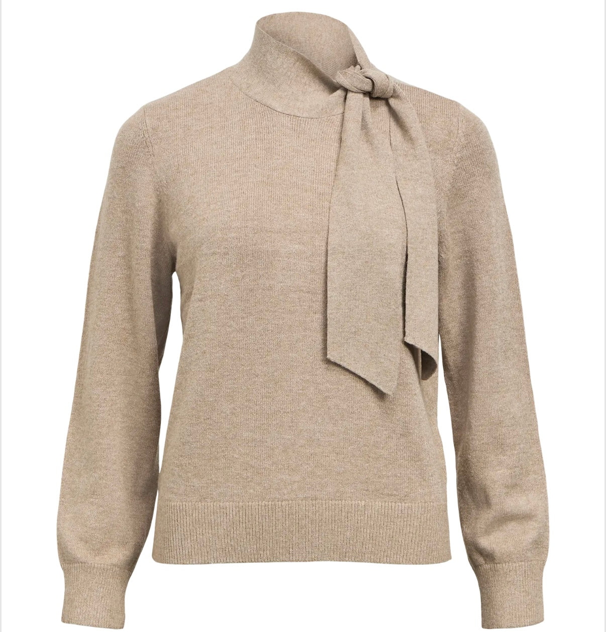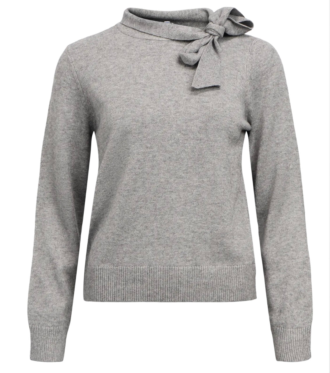 Finstickad, mjuk tröja med fin knytdetalj i halsringningen.