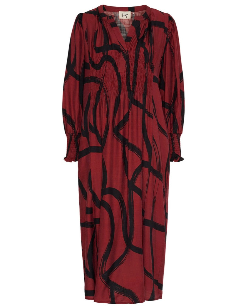 Långklänning med smockdetaljer och ett härligt flow. Otroligt figursmickrande!